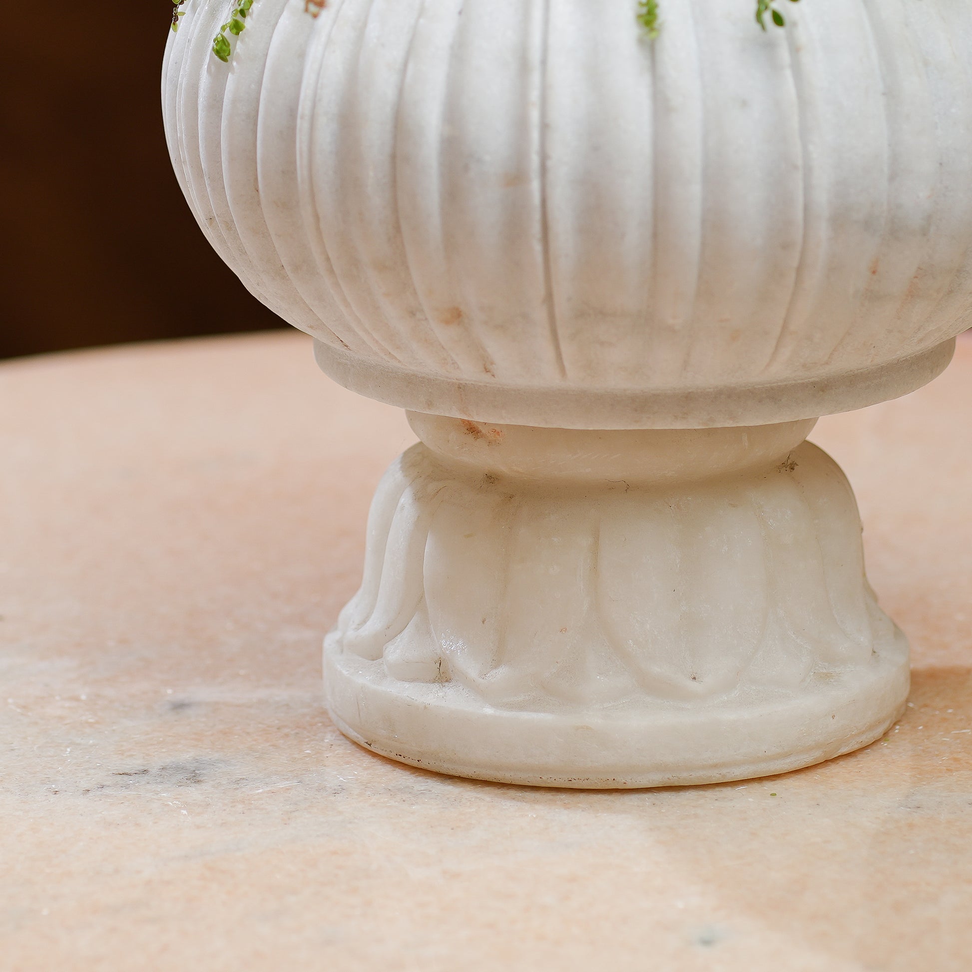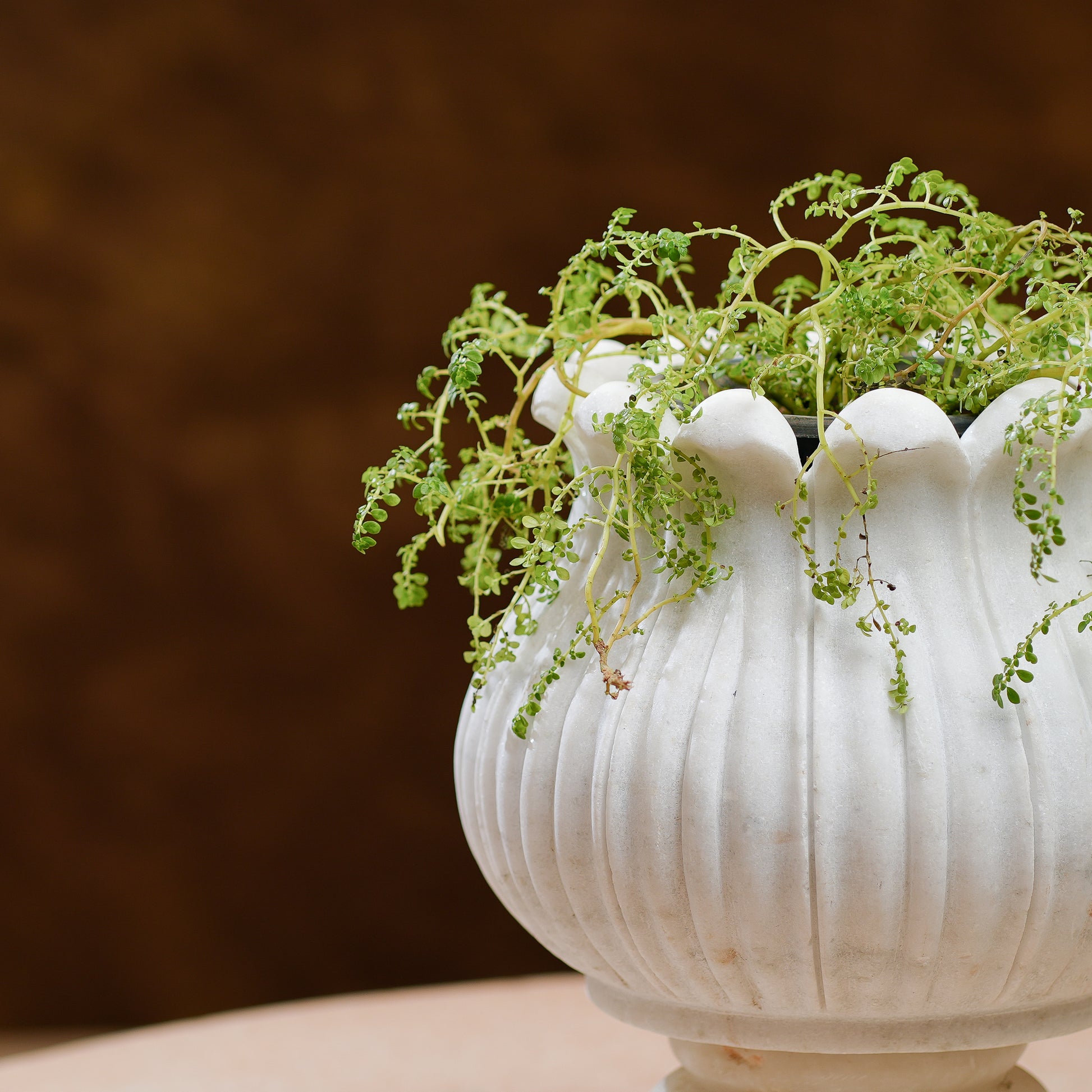 Bring timeless elegance to your home or garden with this handcrafted white marble lotus planter. Carved from premium Makrana marble, its lotus petal design and pedestal base create a luxurious, serene aesthetic. Perfect for indoor plants, succulents, or as a centerpiece. Each piece is uniquely hand-finished by skilled artisans from Rajasthan.