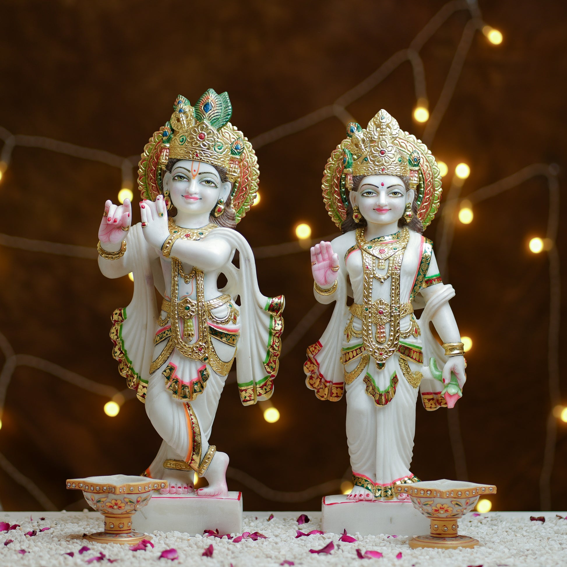 Radha Krishna Marble Idol Set HandPainted with 24K Gold Touch for Divine Decor