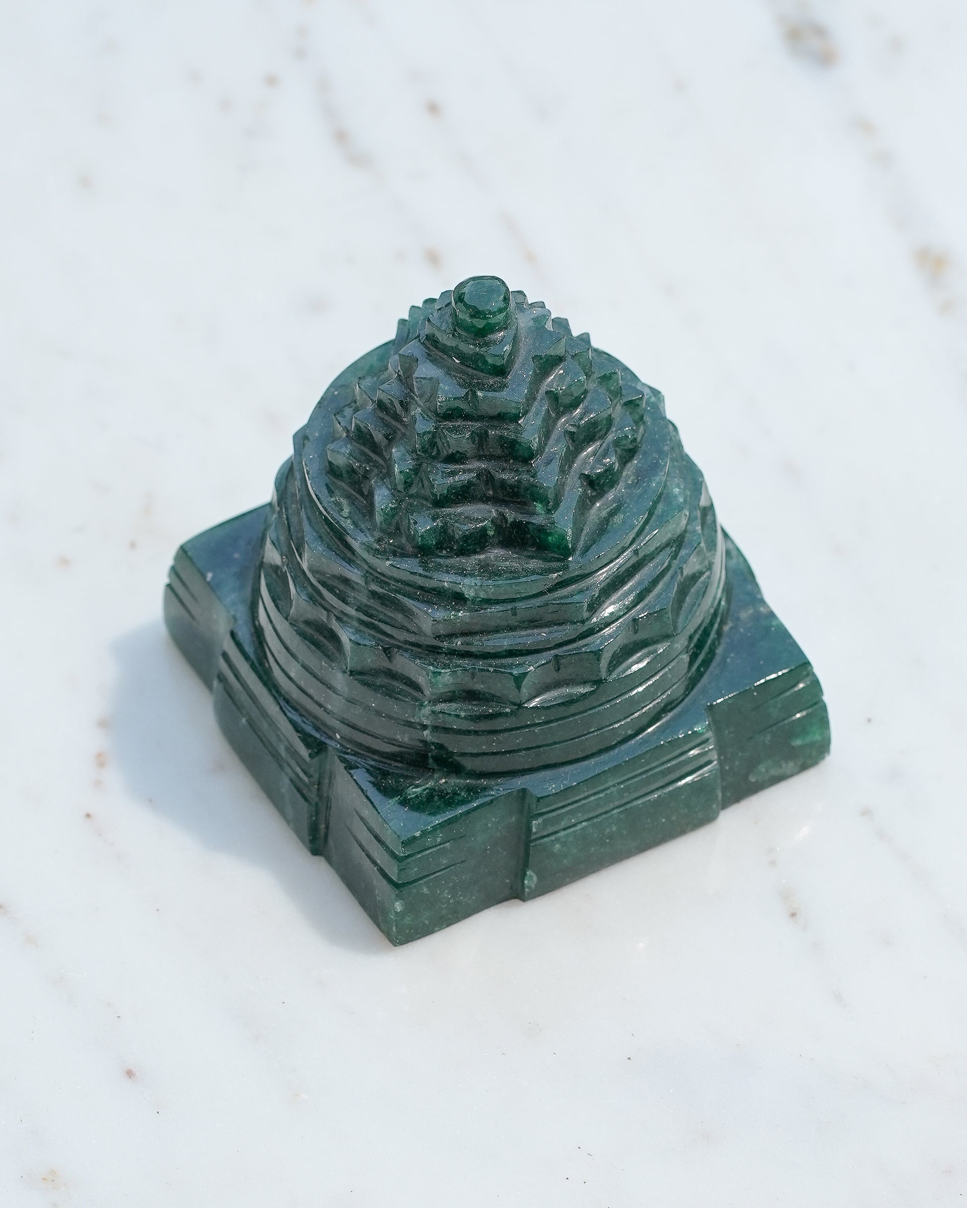 Shree Yantra in Green Jade Stone Hand Carved Meru Design for Prosperity